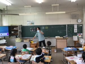 2年生は図工の時間で紙はんが(ステンシルはんが)をしていました。いよいよ刷る活動に入るみたいで、真剣に先生の話を聞いています。どんな作品ができるかな。