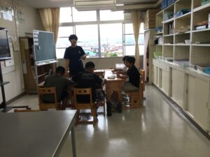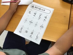 国際教室では先生の話をしっかり聞いて、プリントの問題に答えます。よーく聞いていないと答えられません。