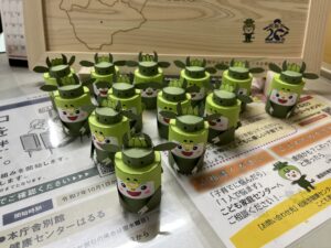 松阪市教育委員会1Fの窓口に、ちゃちゃもの大群です。こうして見ると大迫力です。製作はもちろん、第二小学校のマスコット職人「教頭先生」です。大量発注があったようです。そして…これは誰かわかりますか?